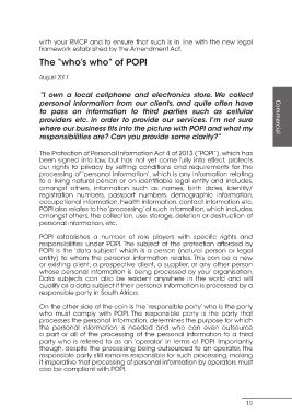 responsibilities under POPI. The subject of the protection afforded by